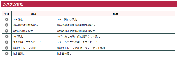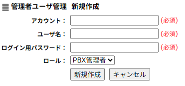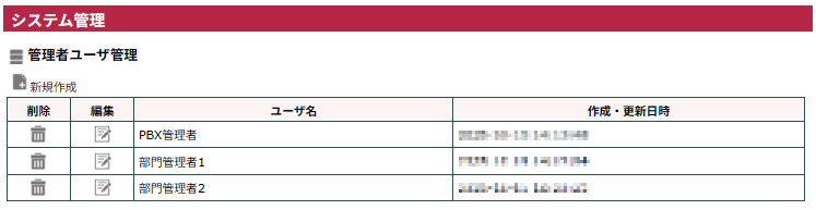 またシステム管理で利用可能な機能は管理者ユーザアカウント(PBX管理者)でのログインをご確認ください。 |