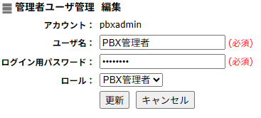 管理者ユーザアカウント(PBX管理者)でのログイン