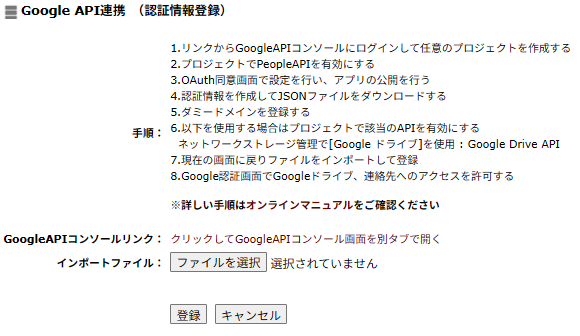 電話帳ファイル登録が表示されXML形式ファイルの電話帳を登録することができます。 |