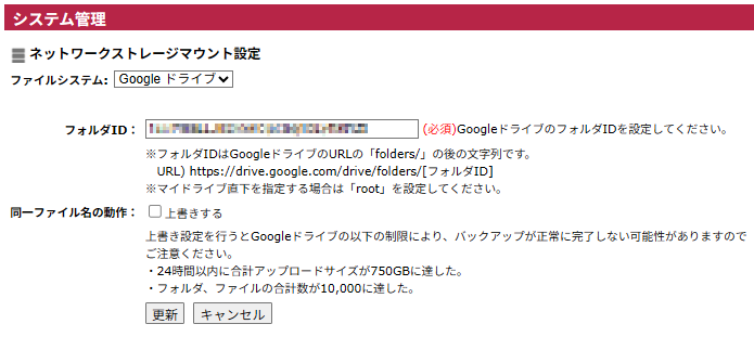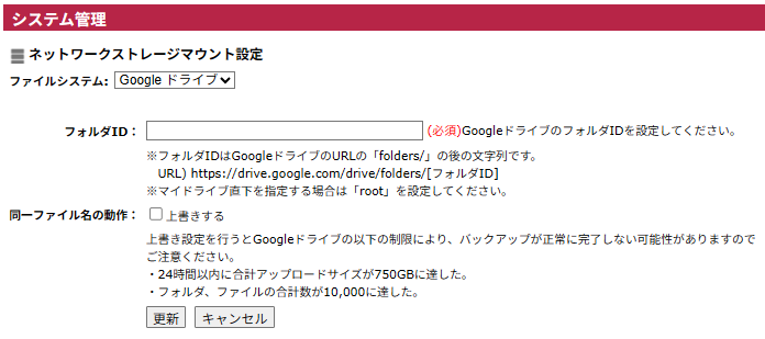 ※容量警告メールは管理者のメールアドレス(アカウント設定)に送信されます。