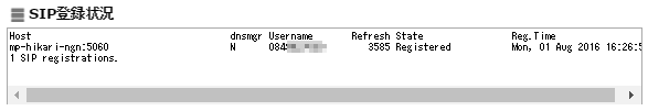 ひかり電話やOpenGateなどSIPプロトコルにより外線を収容した場合に、その登録状況を表示します。