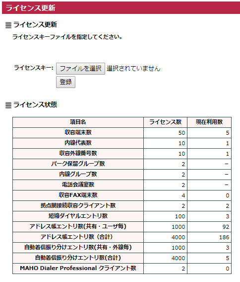 正常に認証が行われた場合は、契約時に指定されたライセンス数が反映されます。