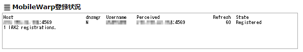 MobileWarpと接続した場合に、その登録状況を表示します。